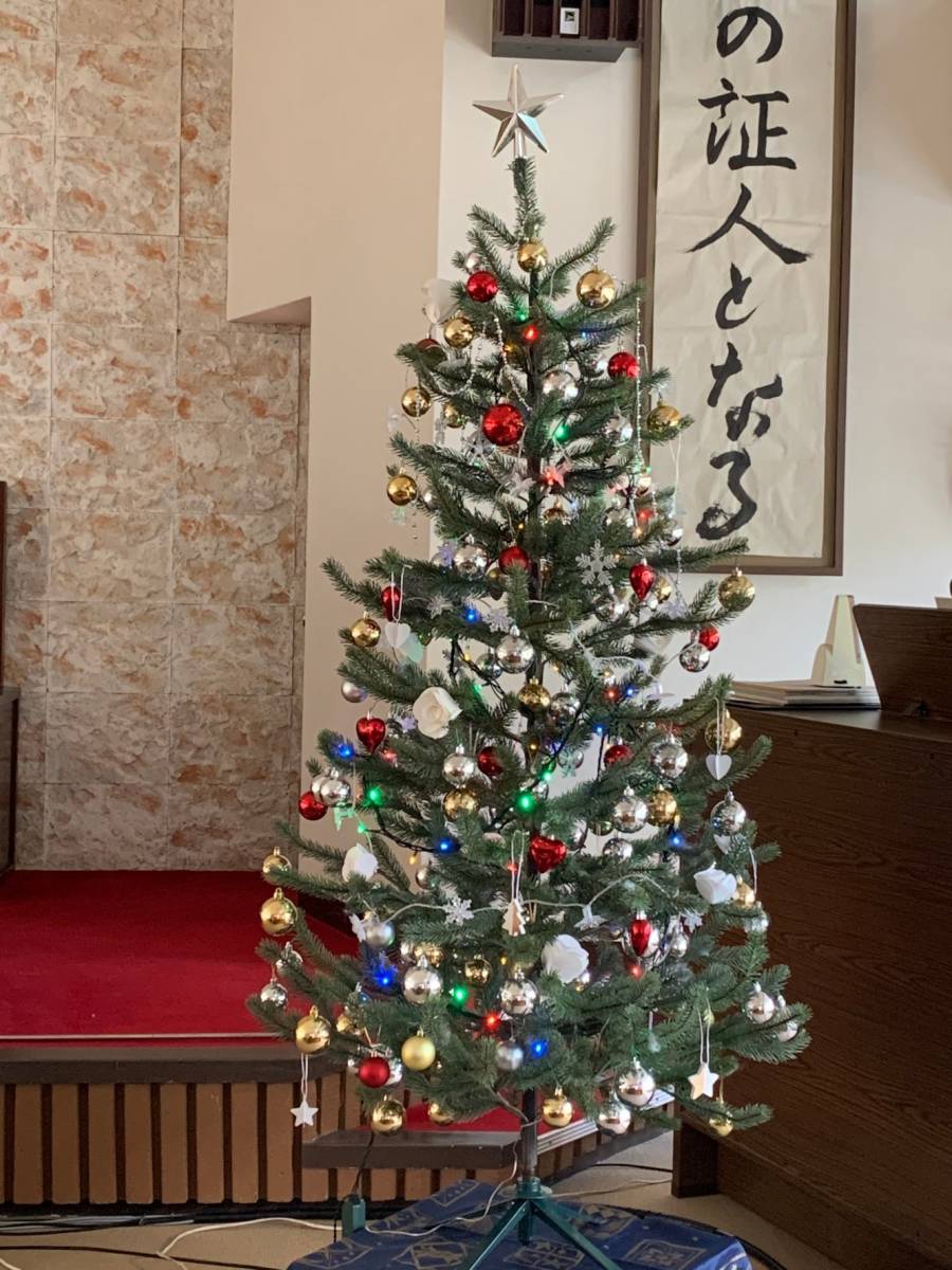 今年はコロナウィルス感染予防を考慮し清掃等の為、屋内の飾りつけは例年通りというわけにはいきませんでしたが、礼拝堂のクリスマスツリーや室外のイルミネーションはも綺麗に点灯されました。